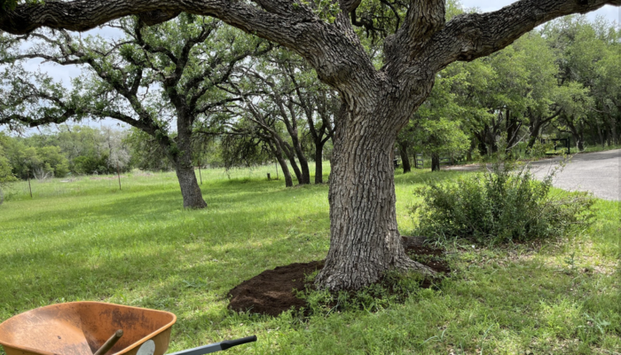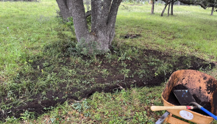 A rich soil-garden, just for your trees’ roots. We add durable, living, bio-rich soil back to the landscape to create an underground moisture bank. The new life on the land, the protections we make when installing and maintaining the sponges, the tree’s roots and the micro-life underground