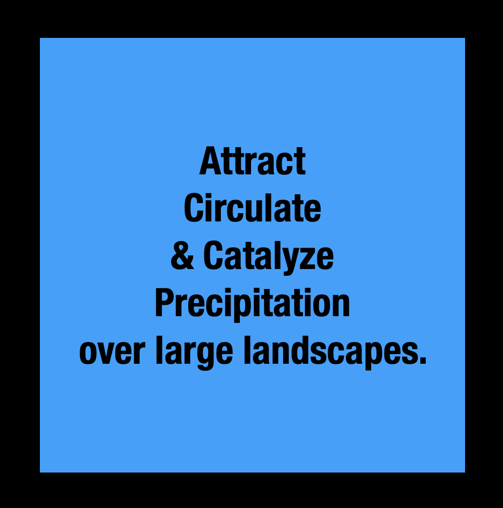 Strategic rehydration of forests is the most effective, efficient and beneficial way to move moisture over large landscapes. How do we know this?Trees and Forests are how rivers and land life were most often established over the eons of life on Earth. According to the science, it is the inward-creeping forests that bring moisture circulation inland. Forests and trees are 100s of millions of years older than humans, and super-human in their moisture-sharing abilities. In times of erosion and drought trees and forests simply need gentle, careful, slow rehydration of their natural, biological wellbeing to refill themselves and initiate drought condition resolution at larger scale. That’s what trees do. They are built to share. Trees = Rain, once hydrated. Water them. Relax. Let them do what they do and eliminate drought conditions.